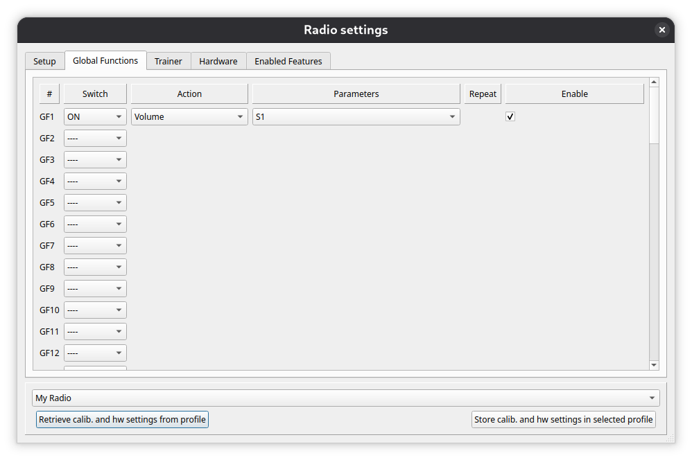 First, open radio settings and enable global functions. I think global function are enabled by default, but i have disabled it together with everything i don’t need.